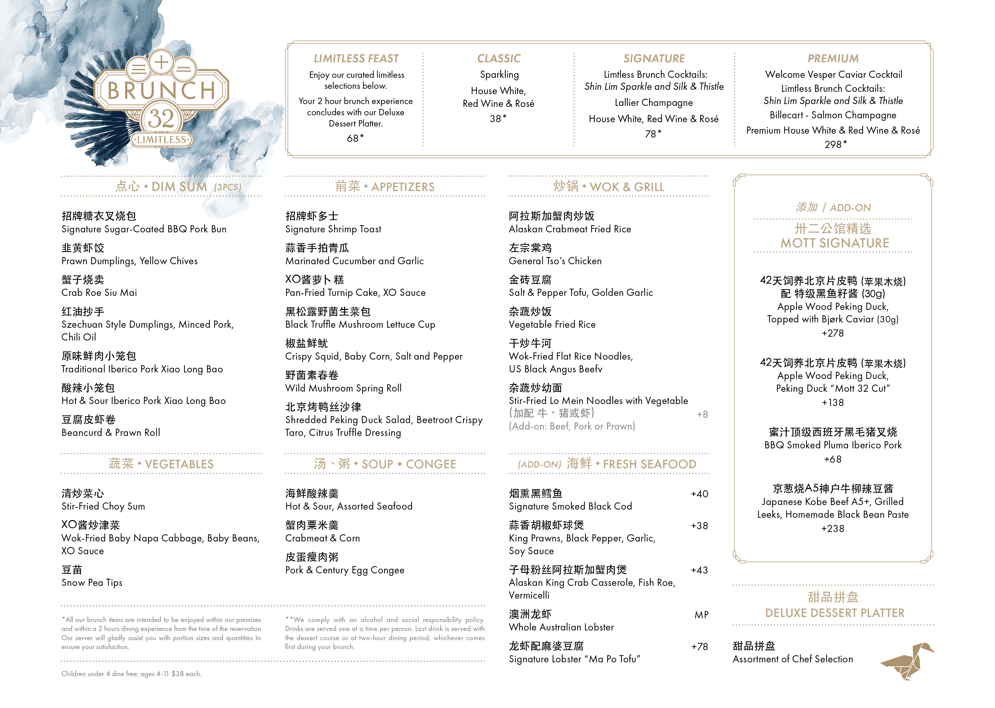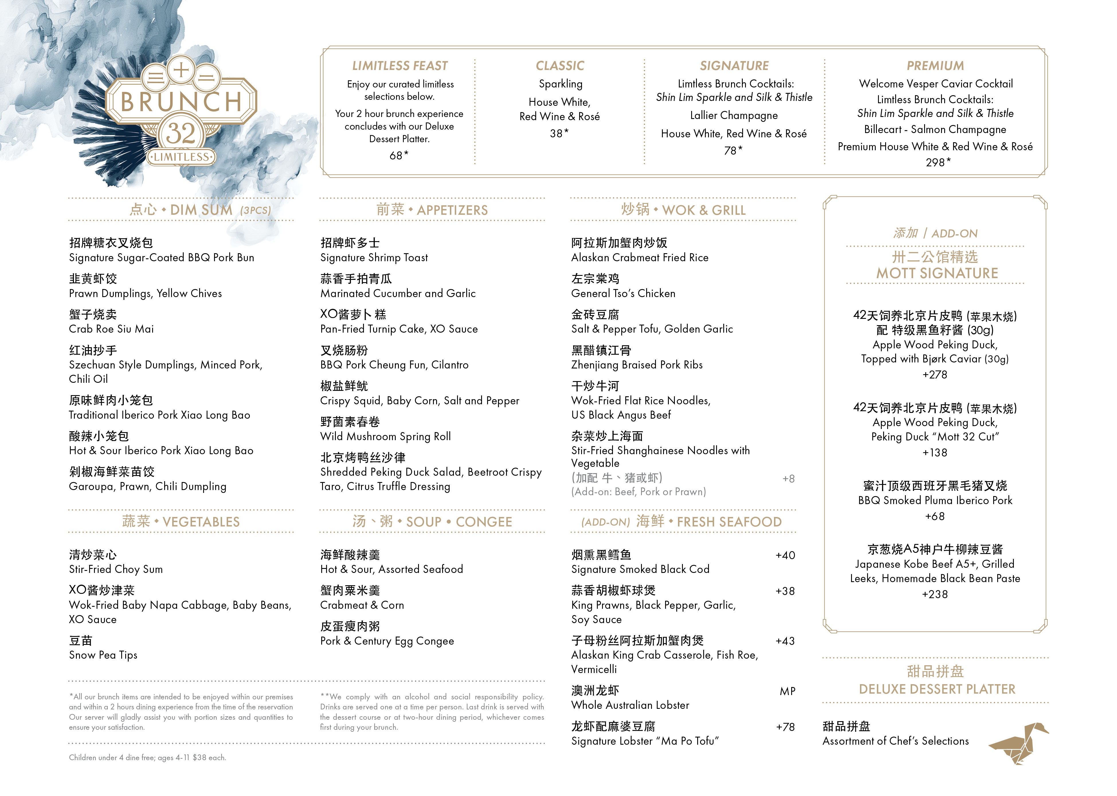 Mott 32 has carefully sourced and selected the best ducks to create the most flavorful and perfectly crispy duck. Our Signature 42 day Apple Wood Roasted Peking Duck is carved using a unique technique developed by our Culinary Team that locks in all the juices making it a true feast fit for royalty as it was intended. It is served tableside with freshly steamed pancakes, thinly sliced cucumber, scallions, raw cane sugar, and house-made special hoisin sauce; the juicy cucumber will allow a refreshing lift as you bite into the crispy, moist, and smoky duck skin.